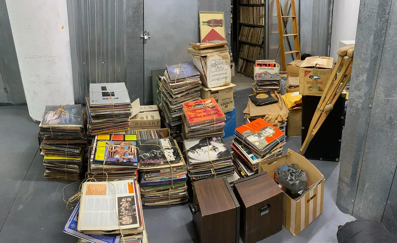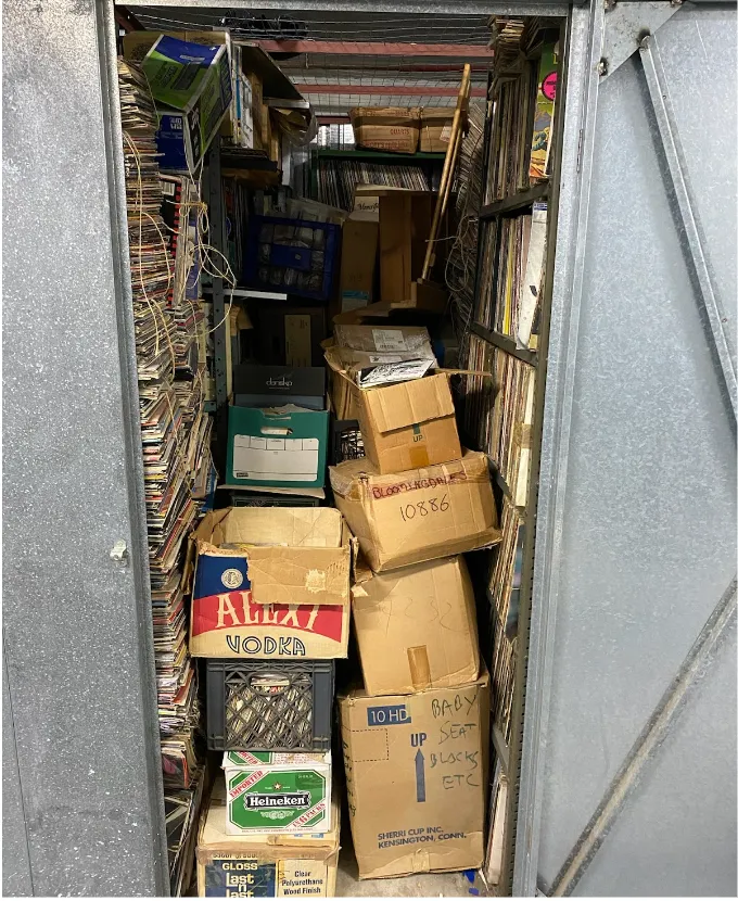 Some of the contents of the five-by-10-by-10 storage unit over near Avenue D I lived just east of Avenue B in Manhattan from age 23 in 1965, where my $45 walkup comprised three rooms plus a tiny toilet with a bathtub in the kitchen, till age 33 in 1975, by which time I'd taken over a $77 four-room with a separate bathroom and a modest office where I wrote most of my Newsday columns and then a bunch of Village Voice rockcrit too. Gradually, of course, the thrill of getting LPs free dimmed as more arrived in the mail every day. And pretty soon we'd moved to a seven-room Second Avenue apartment my wife Carola had found. By then I'd screwed together some industrial shelves--eventually six six-shelf steel 12-by-36 jobs that hold some 240 vinyl LPs per shelf, 1440 per unit, and later there were more. Which means, although some now admittedly hold hi-fi equipment and others have been retrofitted for compact discs, that most of what industrial shelves etc. remain otherwise unoccupied now accommodate some 36,000 vinyl LPs in our apartment alone--assuming I didn't mess up the math.