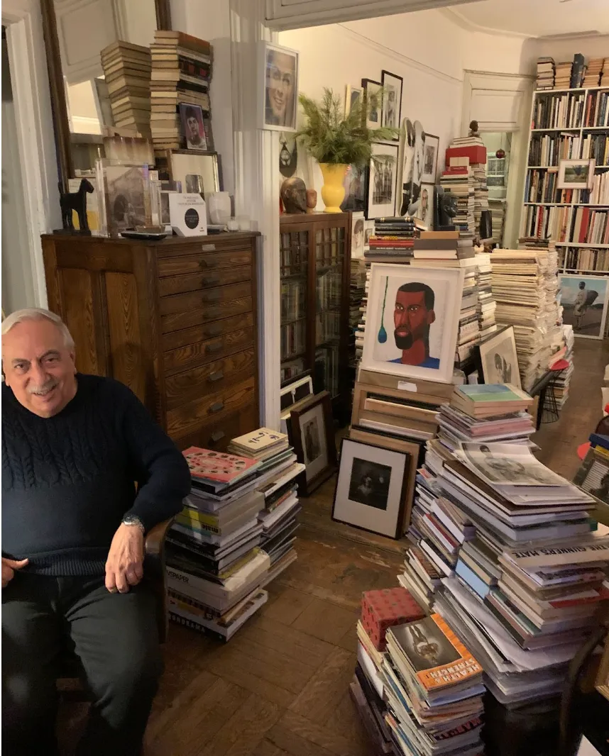 Some of the 1000-plus music bios, histories, and studies (as well as one of the file cabinets, and, oh yeah, CDs and albums) in the office per se So to return to the concept at hand, you tell me even if you have to guess: does my 12-by-six-and-a-half-foot office house a library, a collection, or mayhap an archive, like for instance of those multi-artist CDs, most of which have a geographical or stylistic hook. For all I know, I may have accidentally amassed one of the largest stores of such items on earth even though many more almost certainly never reached my mailbox. So for comparison's sake, at the very least I thought I could do some friendly poking around among not rock critics per se but four somewhat less obsessive old friends and contemporaries, none of them quite as encyclopedic as moi: Robert Christgau, the guy who has no idea where exactly he wants those albums to end up. Oddly--and I truly don't know what if anything this "means"--all four of my chosen interviewees are white gay men: Warhol factory hand, Elektra publicist, Ramones manager, and unflappable hustler Danny Fields, gay liberation pioneer plus Hurrah and then Danceteria overseer Jim Fouratt, inventor of rock criticism Richard Goldstein, and my old friend and neighbor Vince Aletti, who reviewed the Jackson 5 at Madison Square Garden to lead the very first week of Village Voice Riffs I edited in 1974. Vince has lived three floors upstairs from me for almost 50 years and thus was available to lend me the 20-plus '70s albums that made my complete James Brown rundown in the first Consumer Guide book possible. But I wasn't prepared for what I found two weeks ago when I went upstairs to talk legacies with him. Better known now as a Voice and then New Yorker photography critic than as the pioneering r&b and then disco advocate who wrote for Creem and Rolling Stone as well as the Voice, Vince was the Voice's art editor from 1994 to 2005. So those James Brown LPs I mentioned? He's sold most of his vinyl now, retaining just a few hundred favorite titles. But to my surprise his apartment was jammed with other media, chock full of and dominated by old magazines that are bundled and stacked in waist- or chest- or shoulder-high piles over much of his apartment. He plans to sell some of them because at 79, with his writing income diminished, he could use the money.